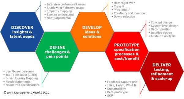A classic example is Rolls-Royce Aerospace that no longer sells its engines.  Rather it supplies and maintains its engines “free” and charges airlines for each engine operating hours.  The DT process has revealed the latent customer need to transform fixed costs to variable costs by linking them to flight hours and thus revenue.