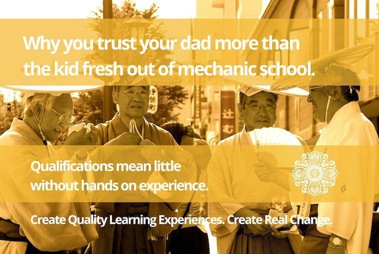 By qualifications I don’t necessarily mean pieces of paper, because in all honesty, they don’t mean much unless they’re backed up with good, solid, outcomes based experience and evidence. Take the university lecturer who has a PhD and 20 years experience boring the living daylights out of his students, versus the ‘self-trained’ expert with 20 years experience and 5 International awards under her belt. Who would you prefer to learn from? I know who I’d choose!